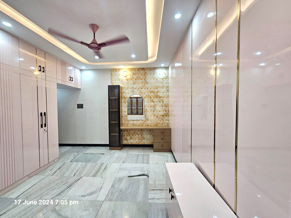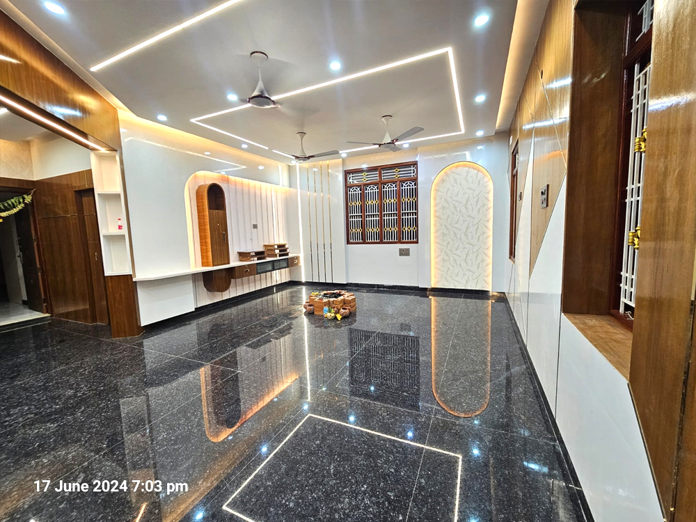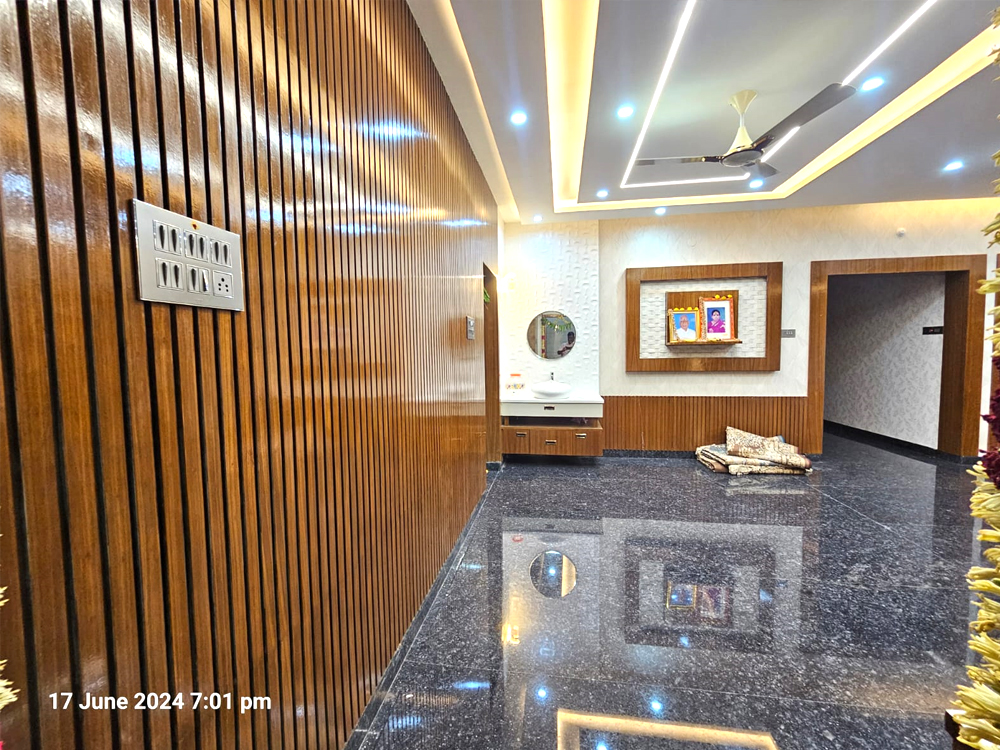 This residential project was designed around a key client requirement: avoiding conventional wall paint to achieve better durability, easy cleaning, and low maintenance. For all major spaces—including the living, dining, bedrooms, kitchen, pooja, and bathrooms—we used a thoughtful mix of PU-coated finishes in highlight areas, OST sheets for seamless and durable wall coverage, premium laminates for a modern wipe-clean surface, and wallpapers to introduce texture and warmth without paint. The overall design follows a contemporary style with clean lines, warm wood finishes, and integrated lighting that enhances the ambience. Every material and finish was carefully selected to balance aesthetics with functionality, resulting in a home that is elegant, practical, stain-resistant, and long-lasting.
