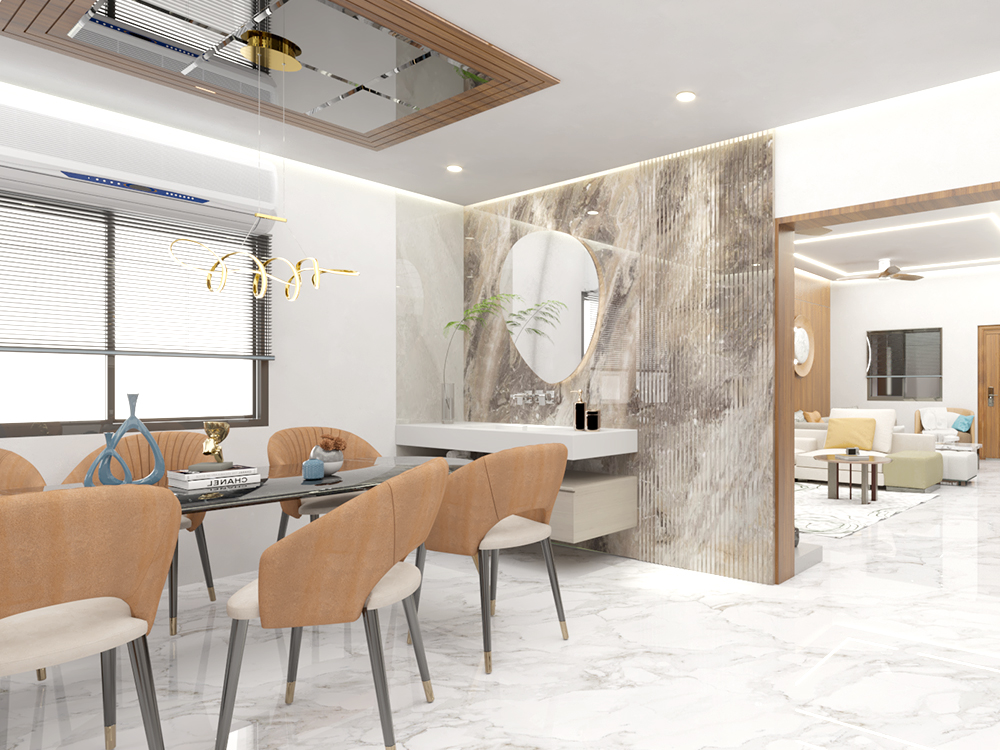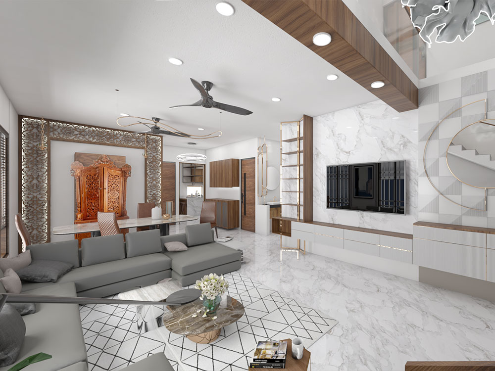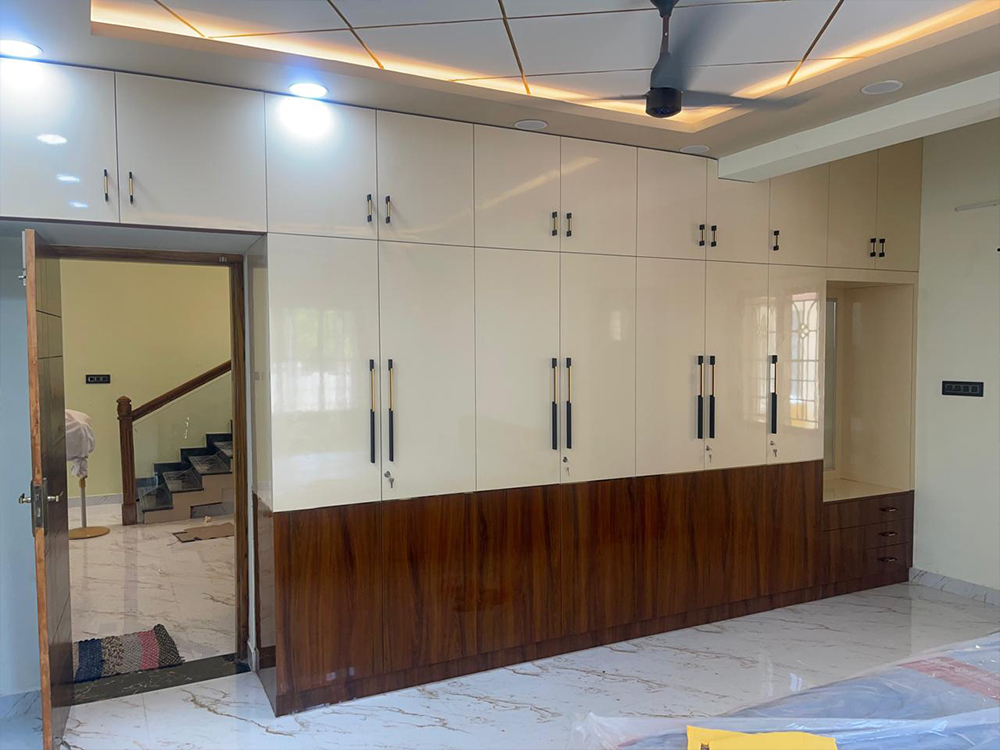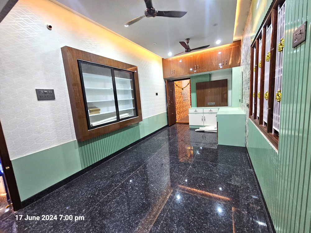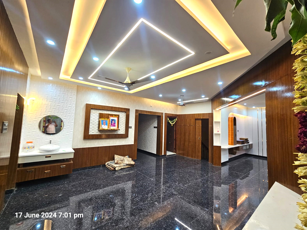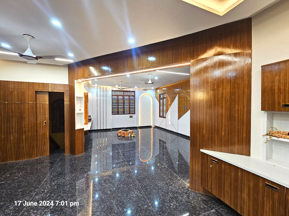 This residential project was designed around a key client requirement: avoiding conventional wall paint to achieve better durability, easy cleaning, and low maintenance. For all major spaces—including the living, dining, bedrooms, kitchen, pooja, and bathrooms—we used a thoughtful mix of PU-coated finishes in highlight areas, OST sheets for seamless and durable wall coverage, premium laminates for a modern wipe-clean surface, and wallpapers to introduce texture and warmth without paint. The overall design follows a contemporary style with clean lines, warm wood finishes, and integrated lighting that enhances the ambience. Every material and finish was carefully selected to balance aesthetics with functionality, resulting in a home that is elegant, practical, stain-resistant, and long-lasting.